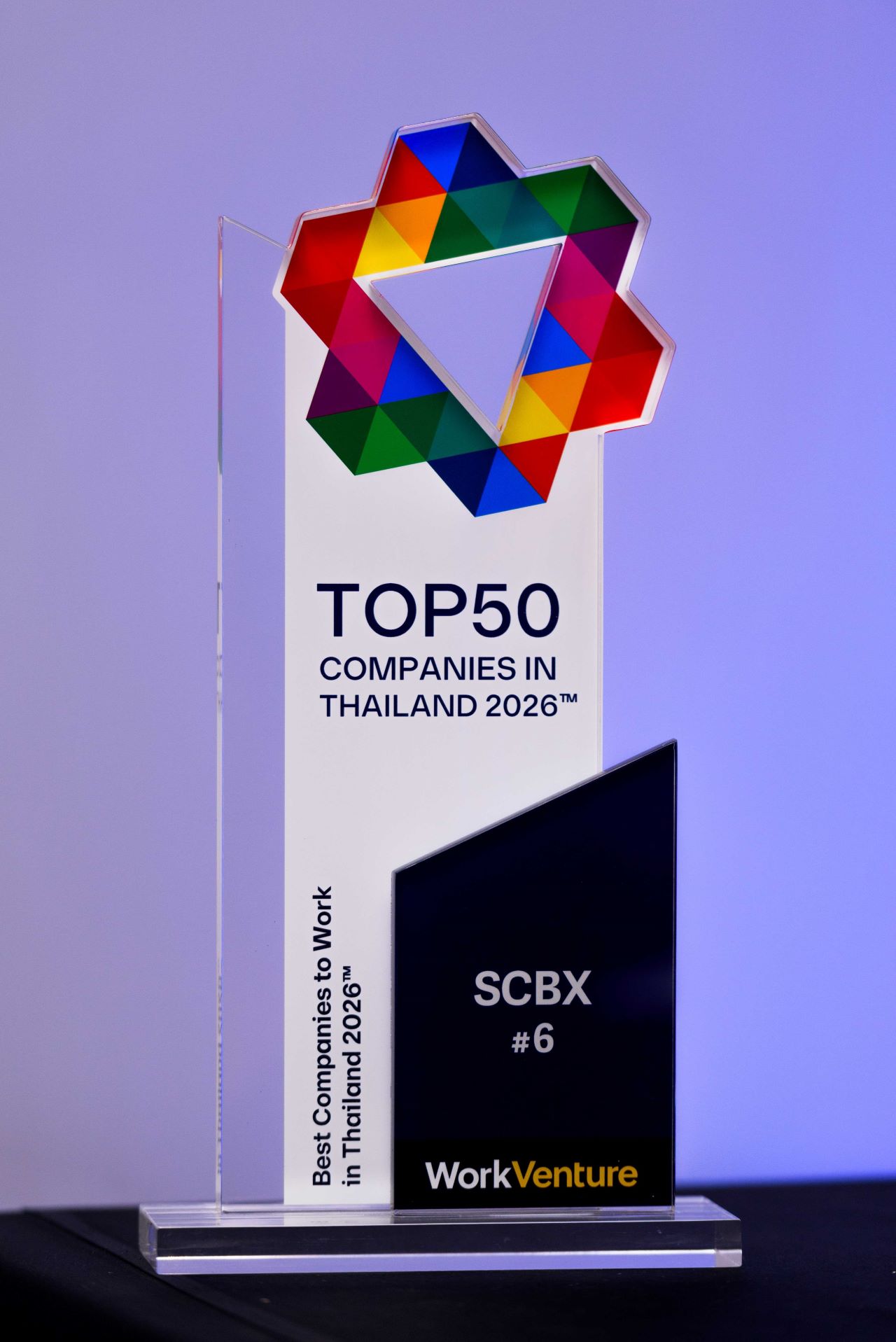กรุงเทพฯ, 16 มกราคม 2569 — บริษัท เอสซีบี เอกซ์ จำกัด (มหาชน) หรือ SCBX กลุ่มธุรกิจเทคโนโลยีการเงินชั้นนำของประเทศไทย ได้รับการจัดอันดับให้เป็นองค์กรอันดับที่ 6 ในการสำรวจ “Top 50 Companies in Thailand 2026” โดย WorkVenture ขยับขึ้นจากอันดับ 9 ในปีที่ผ่านมา สะท้อนความเชื่อมั่นอย่างต่อเนื่องของคนรุ่นใหม่และบุคลากรคุณภาพที่มองว่า SCBX เป็นหนึ่งในองค์กรที่มีความพร้อมสำหรับการพัฒนาอาชีพในอนาคตโดยเฉพาะอย่างยิ่งด้านเทคโนโลยีและนวัตกรรมทางการเงิน