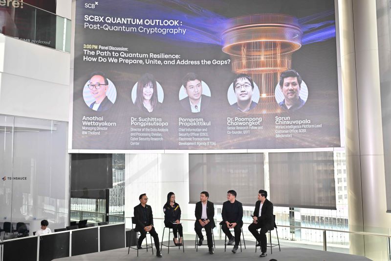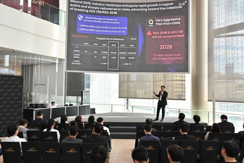 กรุงเทพฯ, 9 ธันวาคม 2568 – SCBX กลุ่มธุรกิจเทคโนโลยีทางการเงินชั้นนำของไทย ตระหนักถึงความท้าทายครั้งสำคัญที่กำลังจะมาถึงจากความก้าวหน้าของเทคโนโลยีคอมพิวเตอร์ควอนตัม จึงได้ร่วมกับบริษัท ควอนตัมเทคโนโลยีฟาวเดชั่น (ประเทศไทย) จำกัด หรือ QTFT จัดทำรายงานฉบับพิเศษ ‘SCBX Quantum Outlook: Post-Quantum Cryptography’ เพื่อเน้นย้ำความจำเป็นในการเตรียมพร้อมรับมือภัยคุกคามจากคอมพิวเตอร์ควอนตัมที่อาจส่งผลกระทบต่อความปลอดภัยของข้อมูลและโครงสร้างพื้นฐานทางการเงินในอนาคต โดยมุ่งนำเสนอแนวทางเชิงกลยุทธ์ที่เป็นรูปธรรมแก่ภาคอุตสาหกรรมสำหรับการเปลี่ยนผ่านสู่ Post-Quantum Cryptography (PQC) เพื่อป้องกันความเสี่ยงจากการที่ระบบเข้ารหัสที่ใช้ในปัจจุบัน เช่น RSA และ ECC อาจถูกทำลายด้วยคอมพิวเตอร์ควอนตัม ซึ่งผู้เชี่ยวชาญคาดการณ์ว่าจะเกิดขึ้นในช่วงปี 2030–2035