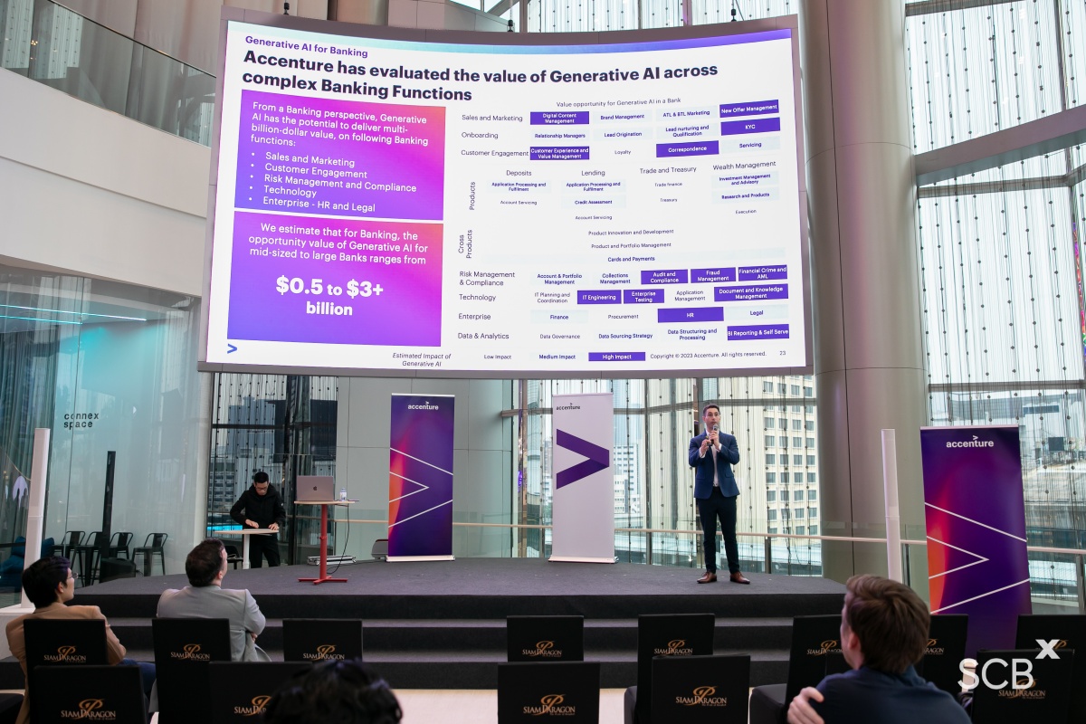 ปัจจุบัน Accenture นำ Gen AI ไปใช้กับงาน Banking Function ที่มีความซับซ้อนขึ้น ช่วยเพิ่มประสิทธิภาพในงานด้านต่างๆ เช่น ด้านการขาย การตลาด การดูแลลูกค้า การควบคุมความเสี่ยง ไปจนถึงเรื่องของ HR และงานด้านกฎหมาย เป็นต้น