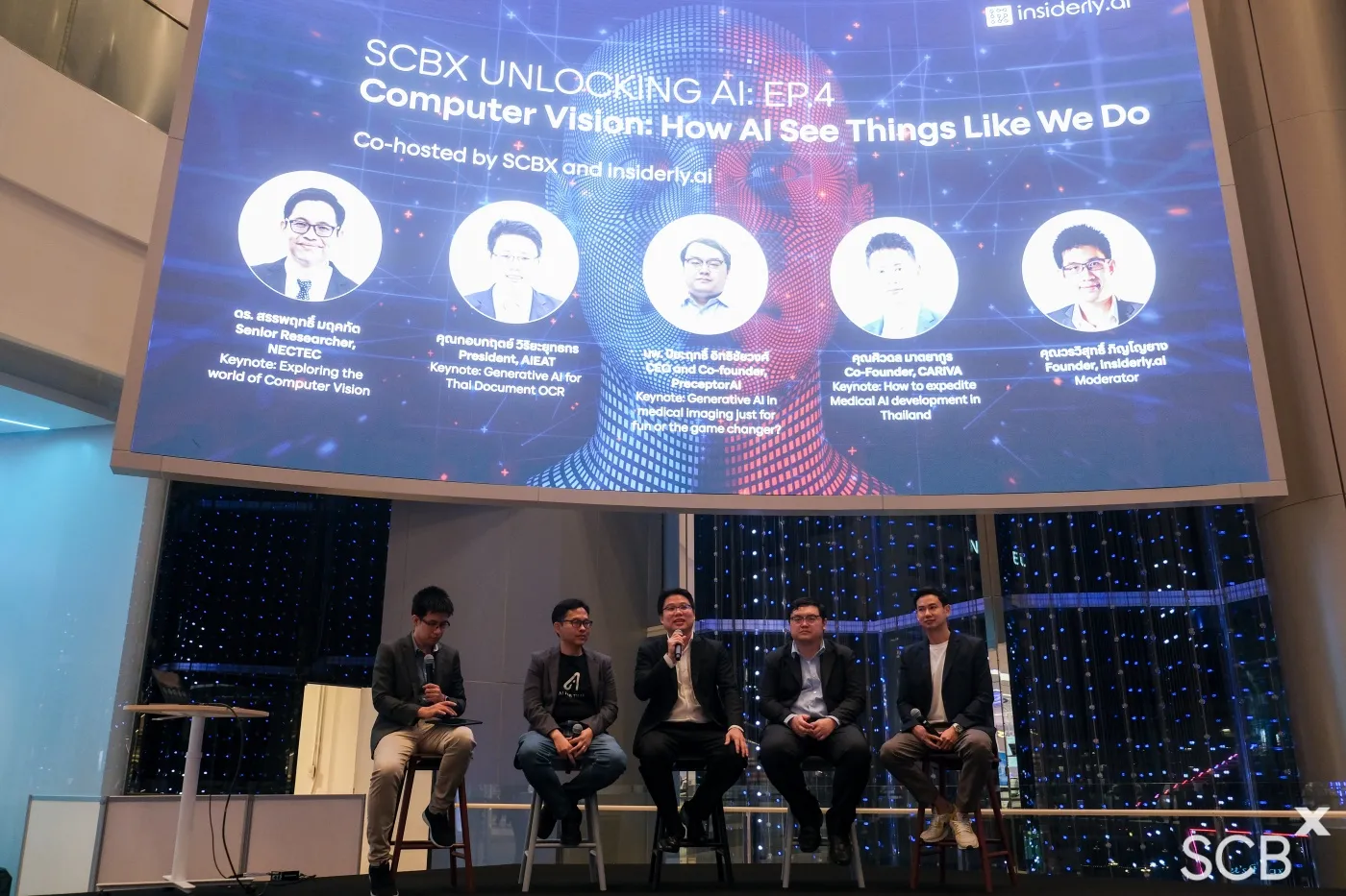 ไม่บ่อยนักที่เมืองไทยจะมีการเสวนาในหัวข้อ Computer Vision ดังนั้นเมื่องาน SCBX UNLOCKING AI: EP4 Computer Vision: How AI See Things Like We Do สามารถรวมตัววิทยากรมากความรู้และความสามารถอย่างดร.สรรพฤทธิ์ มฤคทัต Senior Researcher, NECTEC, คุณศิวดล มาตยากูร, Co-Founder, Cariva, นพ.ปิยะฤทธิ์ อิทธิชัยวงศ์, CEO & Co-Founder, PreceptorAI และคุณกอบกฤตย์ วิริยะยุทธกร, President, AIEAT ให้มาอยู่บนเวทีเดียวกันได้ มั่นใจได้ว่าเนื้อหาจะต้องไม่ธรรมดาอย่างแน่นอน